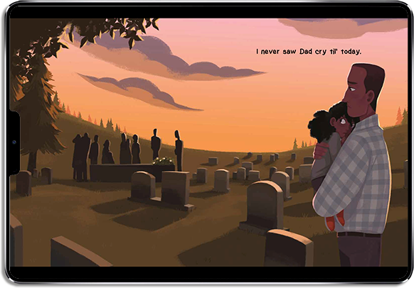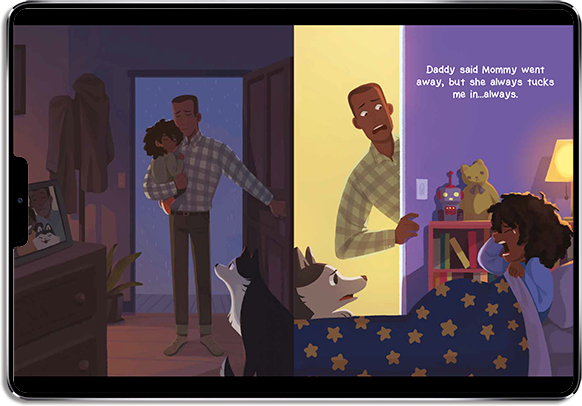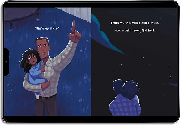 The confusion, pain, and shock of tragedy affects us all, no matter how old we are. After losing her mother, Jurni's dad urges her to look up at the starlit night sky, and explains that her mother will always be up in the stars.
